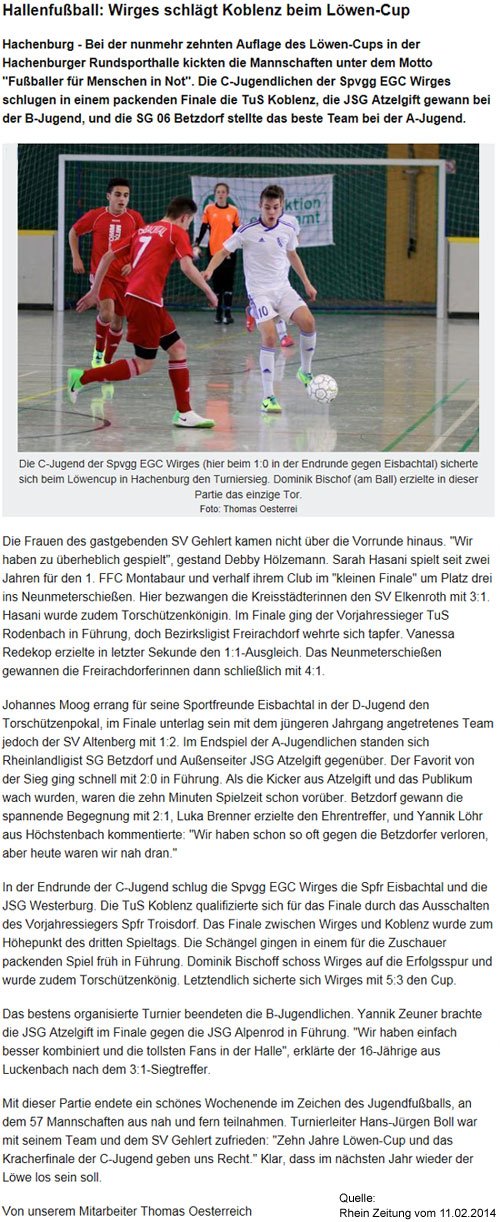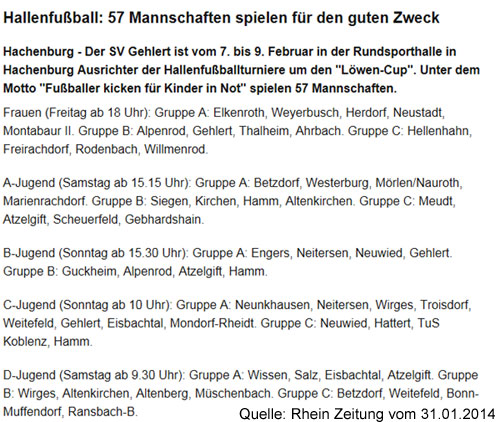 „Löwen Cup 2014" heißen wir euch in der Hachenburger