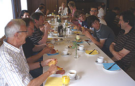 Vereins- und Vorstandsmitglieder in ent- spannter Runde am Stammtisch