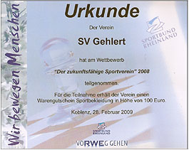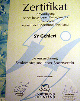 Rheinland zeichnete den SV Gehlert 2009 mit dem Zertifikat