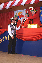 Ehrensitzungs- präsidenten des Gehlerter Karnevals, Heini Schmidt, überreichte.
