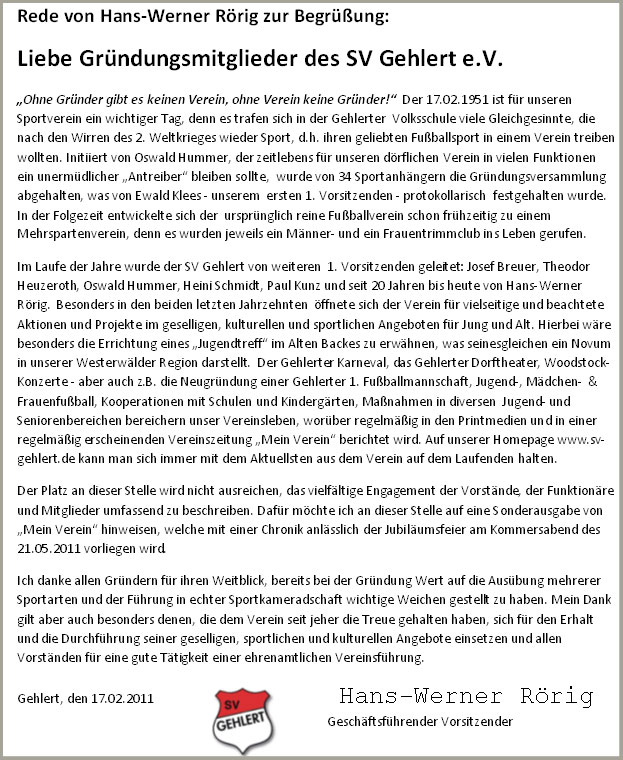 der SV Gehlert im Jahre 2011 sein 60jähriges Vereinsjubiläum. |