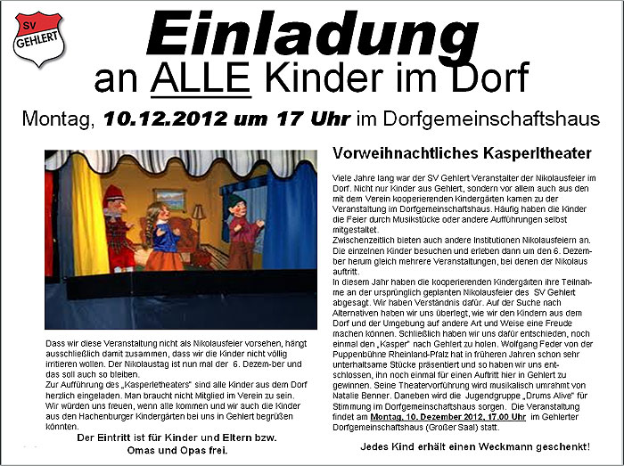 Teilnahme an der ursprünglich geplanten Nikolausfeier des SV Gehlert