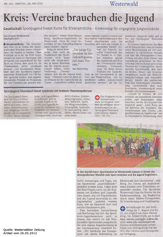Westerwälder Zeitung vom 26.05.2012 über die Jugendarbeit in den