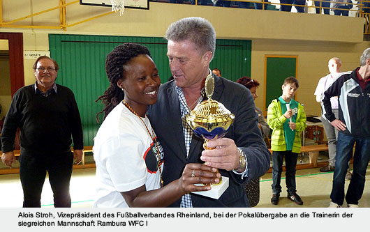 des Rambura WFC den Siegerpokal überreichen. |