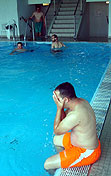 Trainings-Schwimmeinheit im Dreifelder Weiher hin. Und dies bei