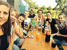 Frauenmannschaft stand vor der Tür. Vollgepackt mit guter Laune