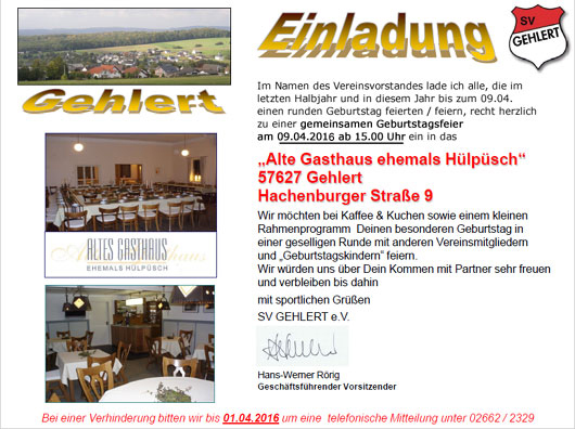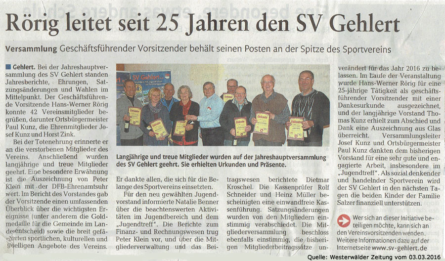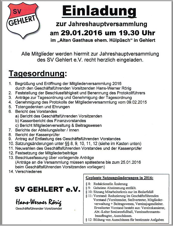 Jahreshauptversammlung 2016 des SV Gehlert standen am 29.01.