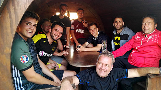 immer noch zusammen und ließen das Fußballjahr feucht-fröhlich