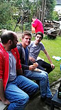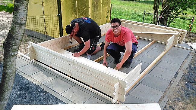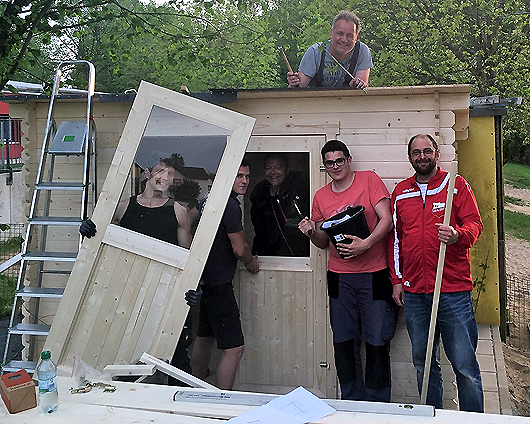 Uhr halfen Klaus, Can, Kevin und Manuel beim Aufbau der
