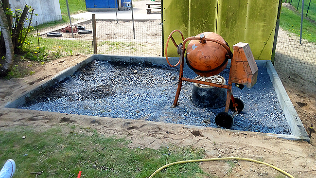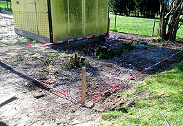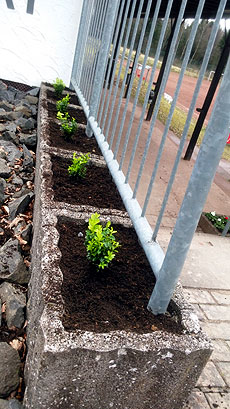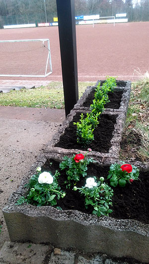 Blumenkübel an der Sportplatztribüne, pflanzte er rechtzeitig zur
