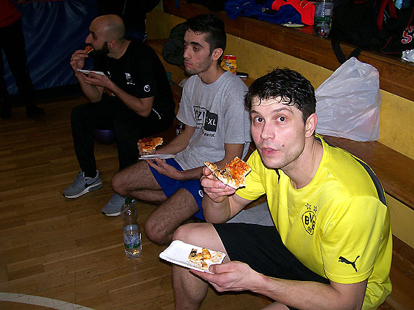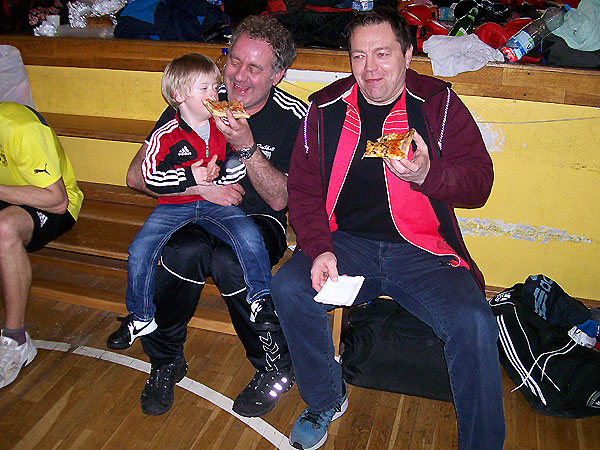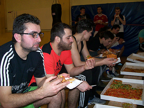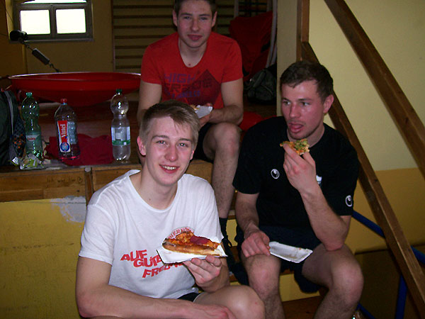 gesponserten Familien-Pizzas stärkten. Nach einem kleinen
