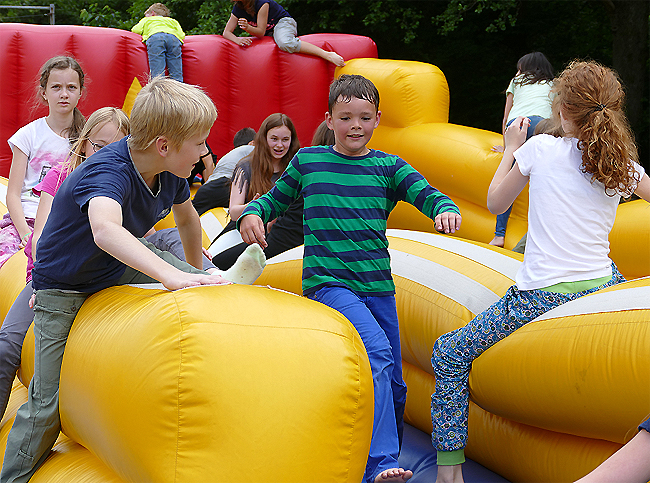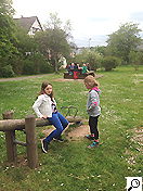 Spielplatzes inklusive Rutsche balancieren, was sich als ziemlich